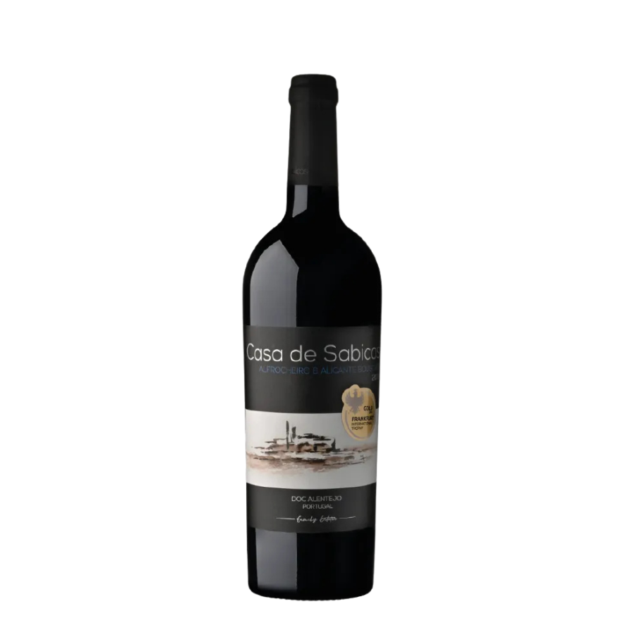Este vinho bivarietal da Casa de Sabicos é um field blend das uvas Alfrocheiro (60%) e Alicante Bouschet (40%), provenientes de vinhas familiares em solos vermelhos calcários e graníticos. As uvas são colhidas à noite e fermentadas juntas em cubas troncocônicas com controle de temperatura. Sem passagem por madeira, preserva a pureza das variedades, revelando-se exuberante, fresco e muito frutado, com excelente equilíbrio. Apresenta cor rubi intensa, aromas marcantes de morango e frutos silvestres maduros, paladar suave e vibrante e final longo e persistente. O rótulo traz uma aquarela original de Graça Santana Ramalho, que estiliza um monte alentejano e reforça a conexão autêntica do vinho com a terra.